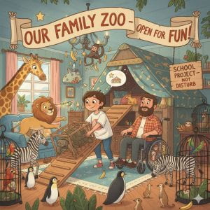 There was a whole zoo in our house. I was shocked how I would tell this to my parents. I thought for a bit then I had an idea. I went straight up to our attic and then I had to bring the animals up the ramp. The reason we had a ramp instead of something else is because my dad is disabled and he cant walk. First I brought all of the calm animals like all the ones in the cage. When I finally got one up my dad had come out. He was nearly at the attic. I couldn’t let him see all the animals. I closed up the attic and put an old cloth over all the cages. I walked over and morning dad in a suspicious voice. He asked why there are a bunch of old clothes in your room? Nothing I said was just a school project. He said ok and wheelchaired away. I sighed in relief then continued. The dangerous animals like the lion started roaring and my dad came back at the speed of light and said what was going on. What was that? I said nothing, just an engine roaring. He stayed to watch me. The truth finally came out. I said I wished upon a star for fun but then it became true and now we have a whole zoo in our house pls dont be mad at me I didnt know it would end up like this im sorry. He said what that is the biggest lie ive ever heard but now that we have them we might as well use them and feed them. We will open our own zoo. And that’s what we did. We made our own zoo, made a living and had a nice time with all the animals. The end